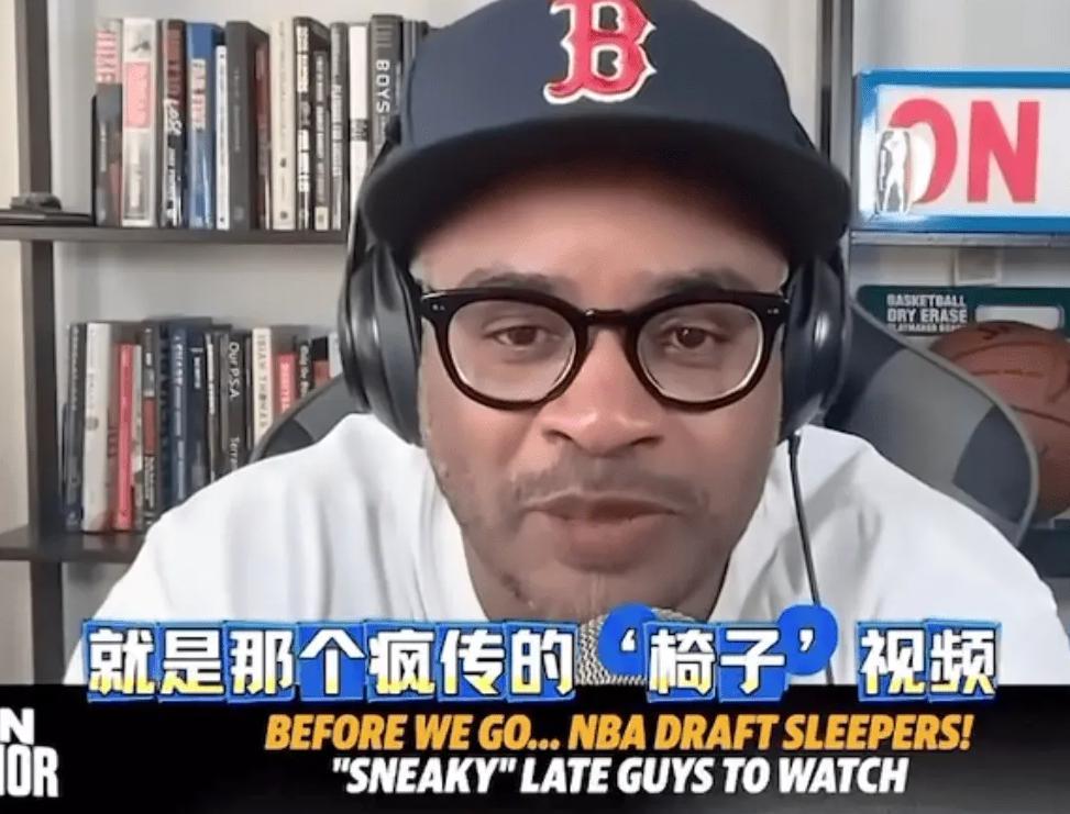 接着就是一些中国前辈球员在NBA选秀圈有劣迹表现,导致NBA不太信任中国球员,比如某“椅子男”,因为对抗不行,经纪公司不安排对抗比赛,只让这名球员面对椅子展示球技,ESPN记者比尔西蒙斯讽刺此人是椅子男,凯尔特人总经理安吉也表示某人只和椅子对抗。