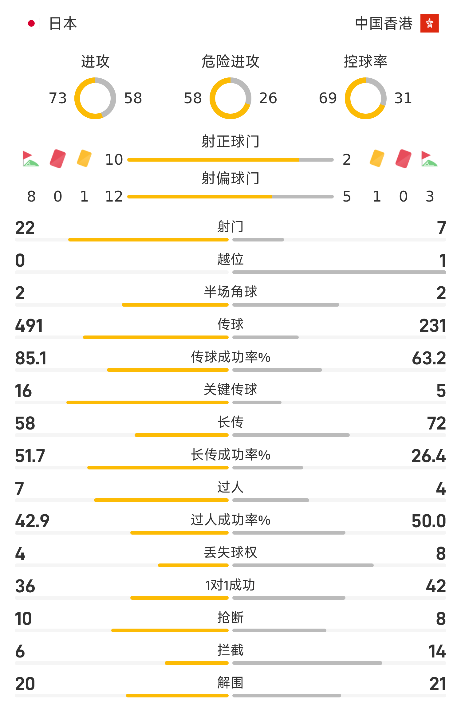 全场比赛结束,日本队以6-1狂胜中国香港队。