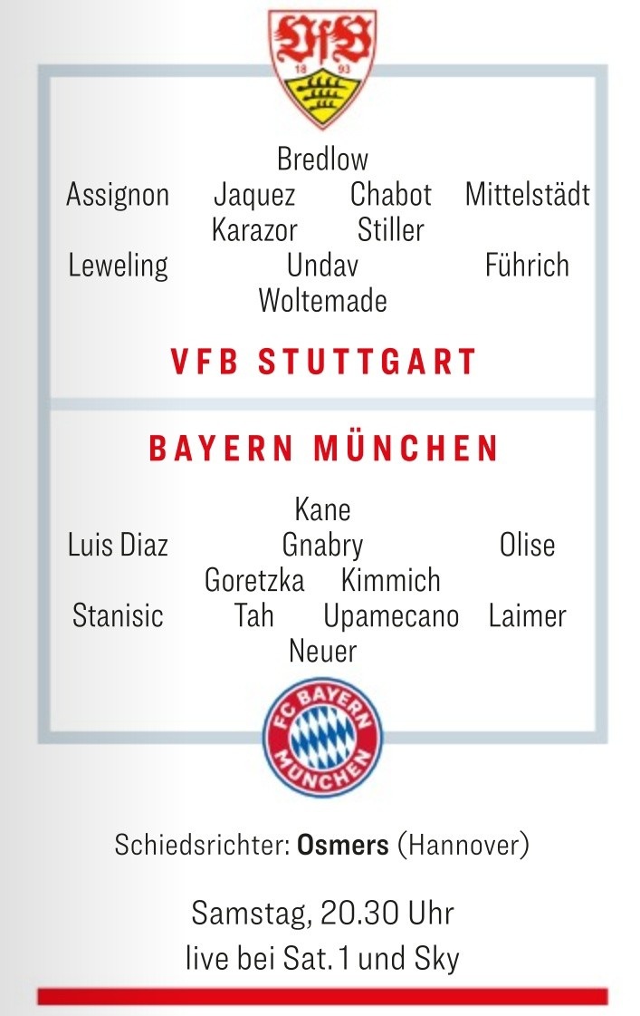 8月14日最新消息,德国超级杯拜仁对阵斯图加特的比赛将于北京时间8月17日凌晨2:30打响。德国权威媒体《踢球者》对双方可能派出的首发阵容进行了前瞻分析。