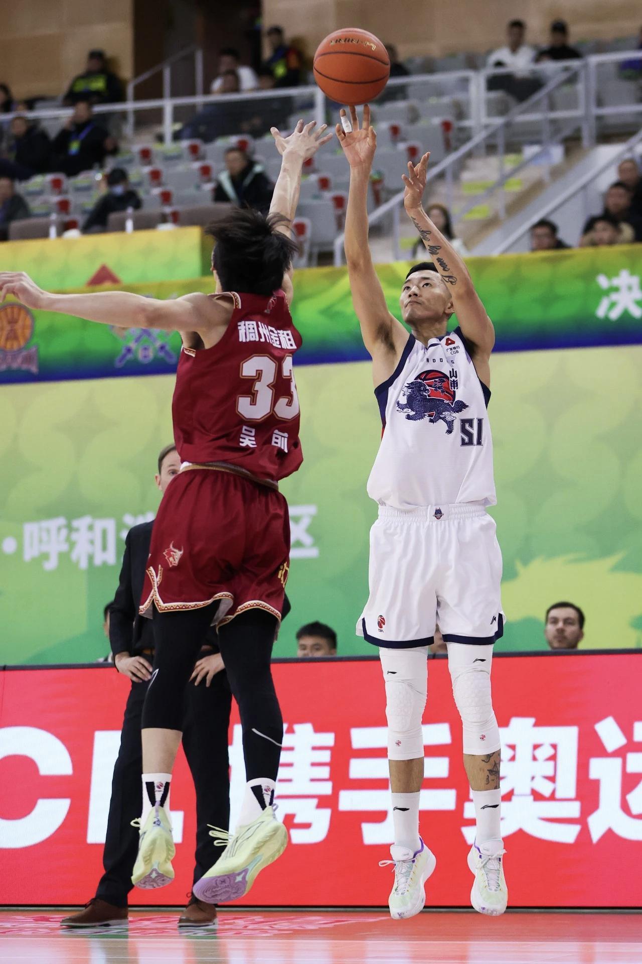 那么,从以上这次进攻来看,山东队真的找到陈林坚的使用说明书了吗?其实不然,球队在阵地进攻中为陈林坚主动创造的得分机会,依然非常稀少。本场陈林坚的三记三分球,有1次是来自转换进攻, 另外两次都是外援在无法出手情况下的“甩锅”,陈林坚是顶着防守人强势命中,其中也包括最后时刻的关键后撤步三分。